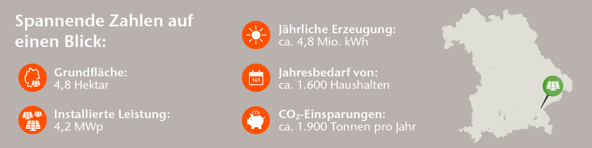 Die PV-Freiflächenanlage Burghausen entstand auf einer Fläche von etwa 4,8 Hektar mit knapp 7.000 installierten Modulen, welche zusammen eine Gesamtleistung von etwa 4,2 MWp ergeben. Dadurch produziert der PV-Park jährlich rund 4,8 Millionen kWh Ökostrom für die Bürgerinnen und Bürger der Stadt Burghausen und spart pro Jahr etwa 1.900 Tonnen CO2 ein – das entspricht rund 950 gepflanzten Bäumen. Das macht den Solarpark am Hieringer Feld zu einem zentralen Beitrag für die nachhaltige Energiezukunft.